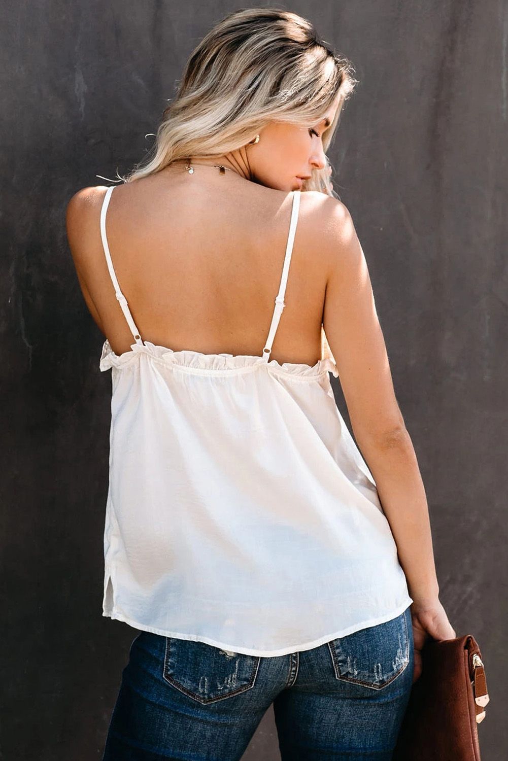 Relaxed cami fit with adjustable spaghetti straps and a racerback style