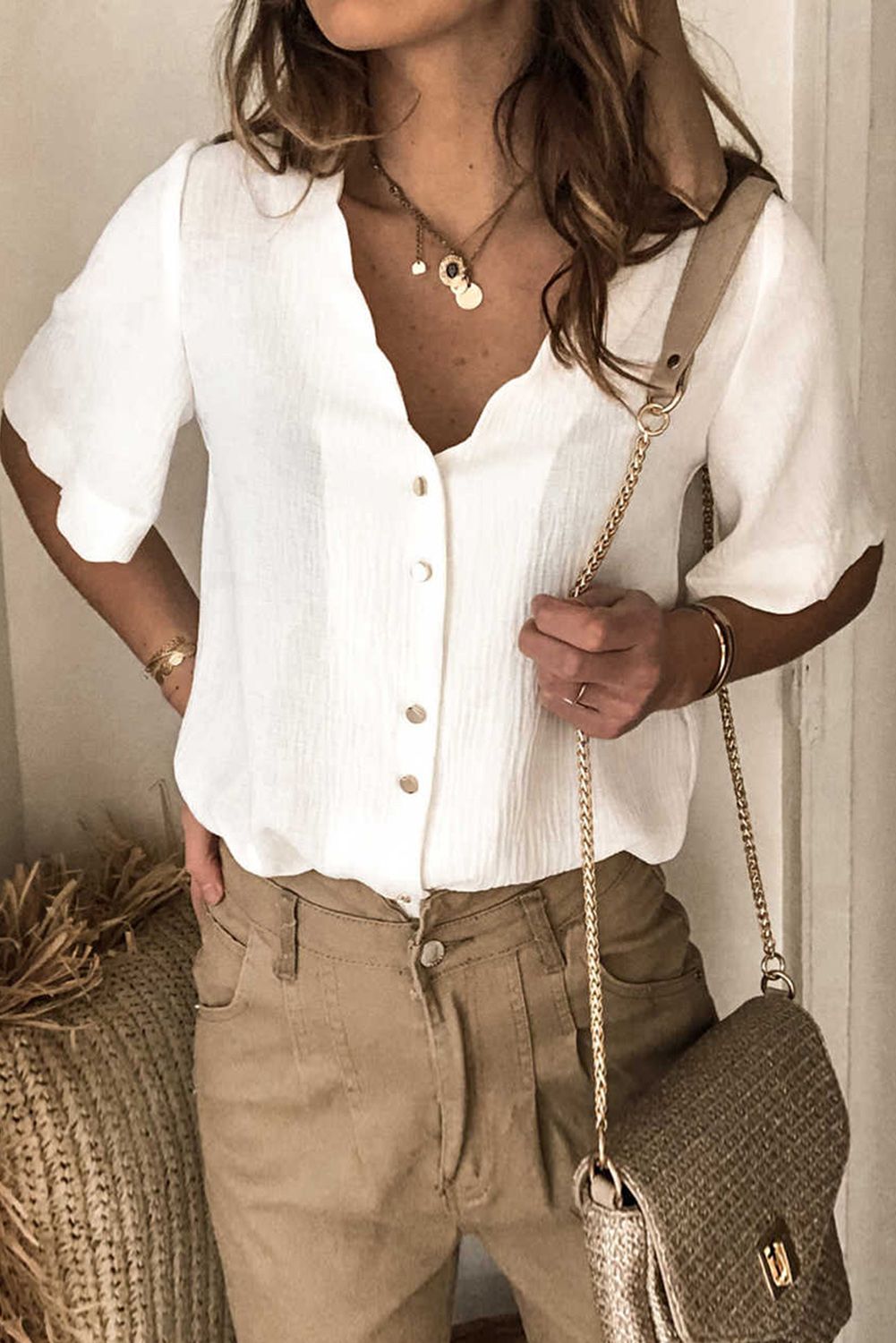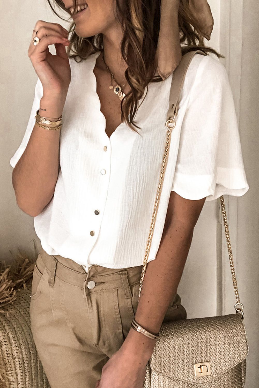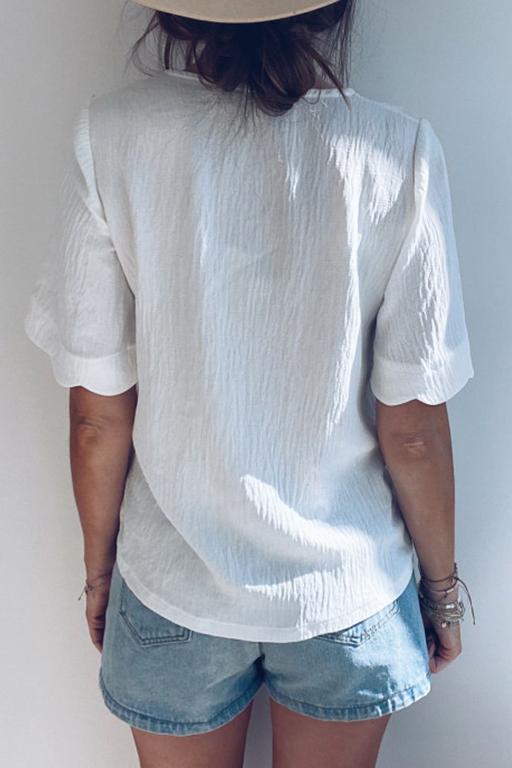 Black Scalloped Neckline Textured Short Sleeve Shirt