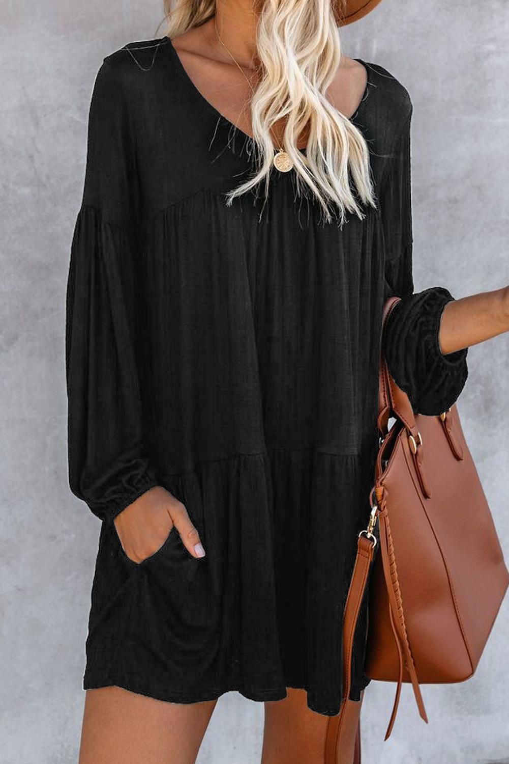 Black Wanderlust Pocketed Tiered Tunic Dress