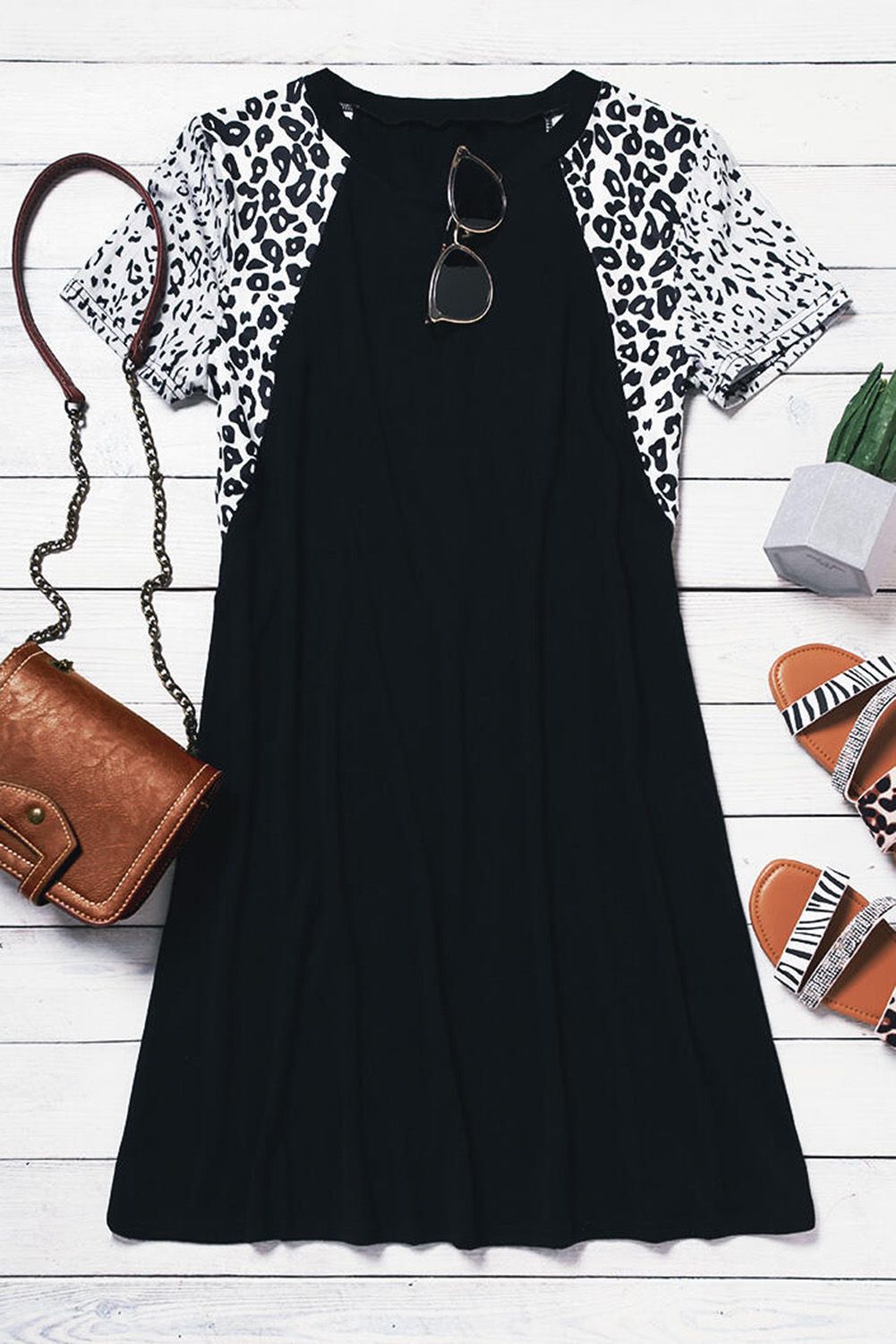 Leopard accents raglan sleeves design makes this dress more faddish