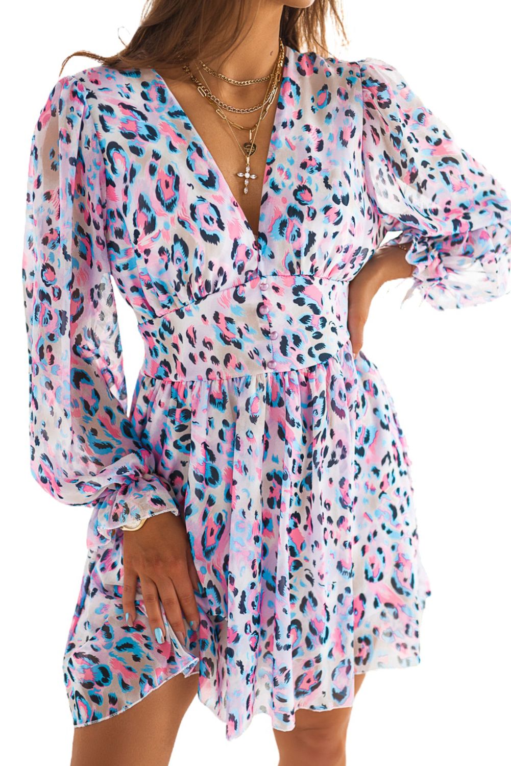 Short dress for ladies has a chic wild leopard pattern silhouette