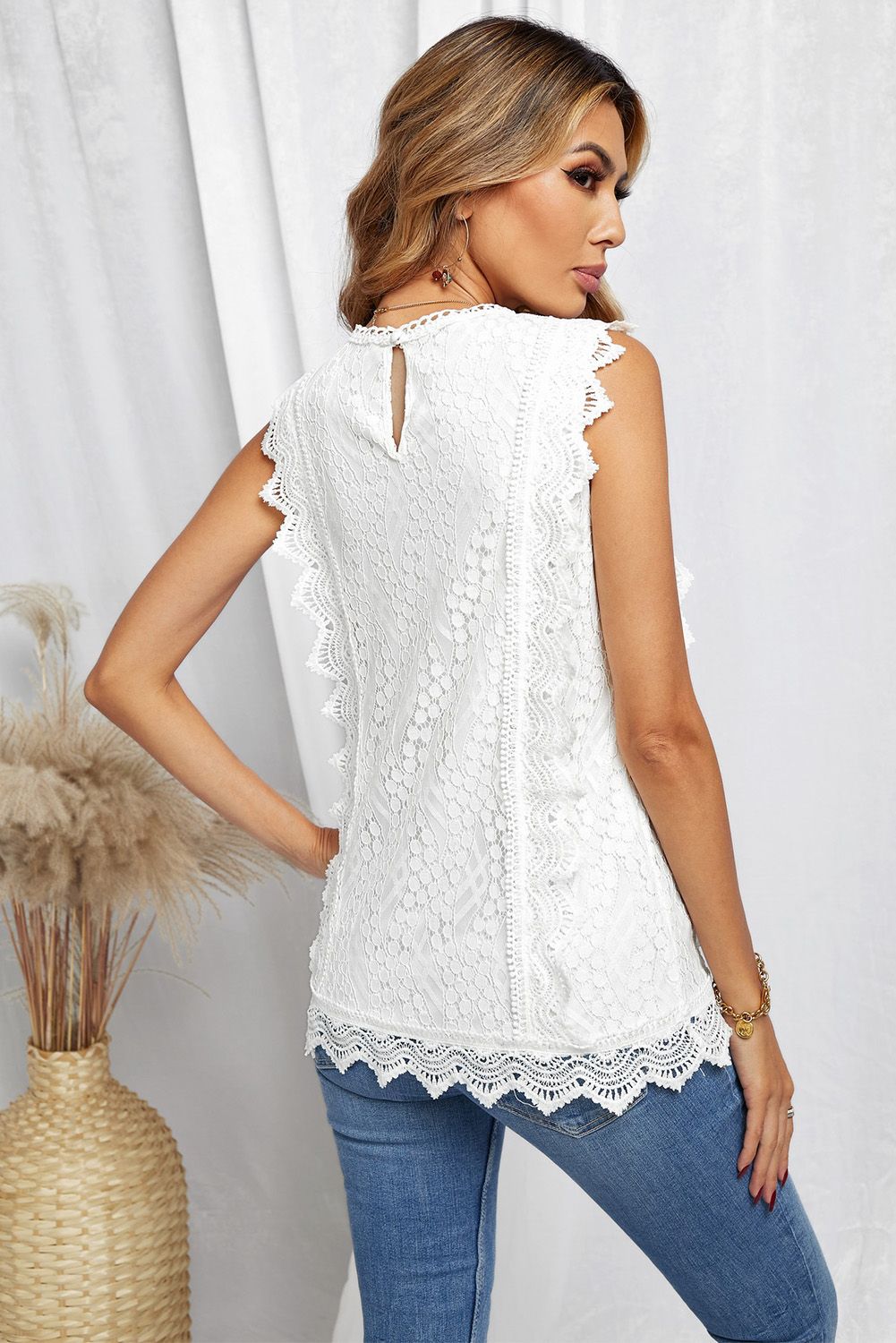 The women’s casual tank decorates with lace patchwork, simple but elegant and well-designed