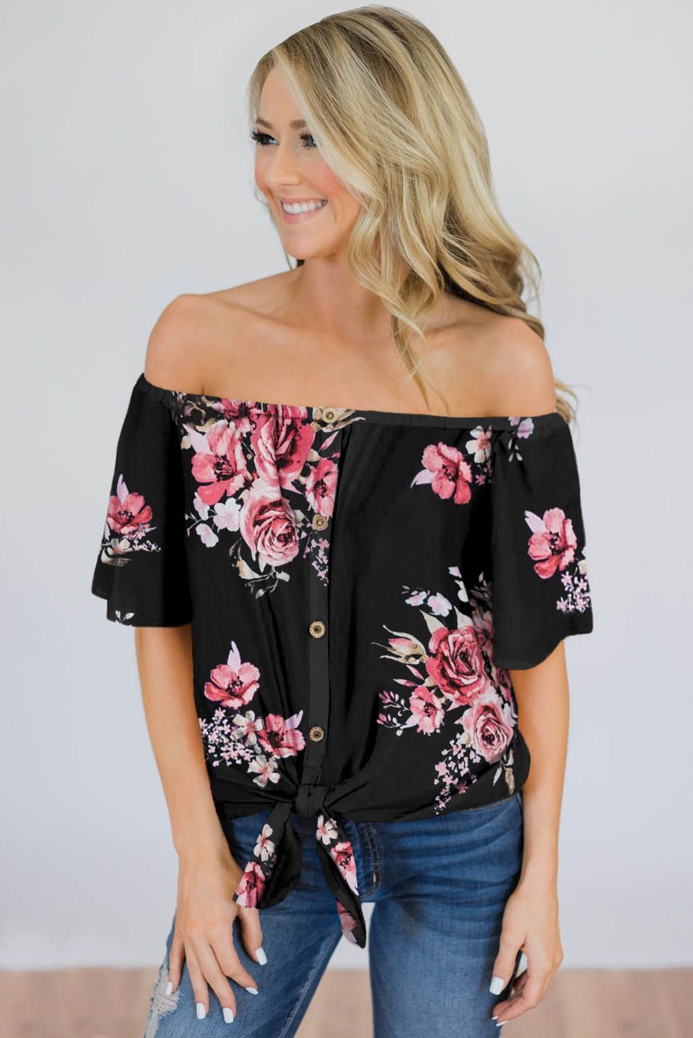 It has the most beautiful floral pattern, cute buttons, and it ties at the bottom