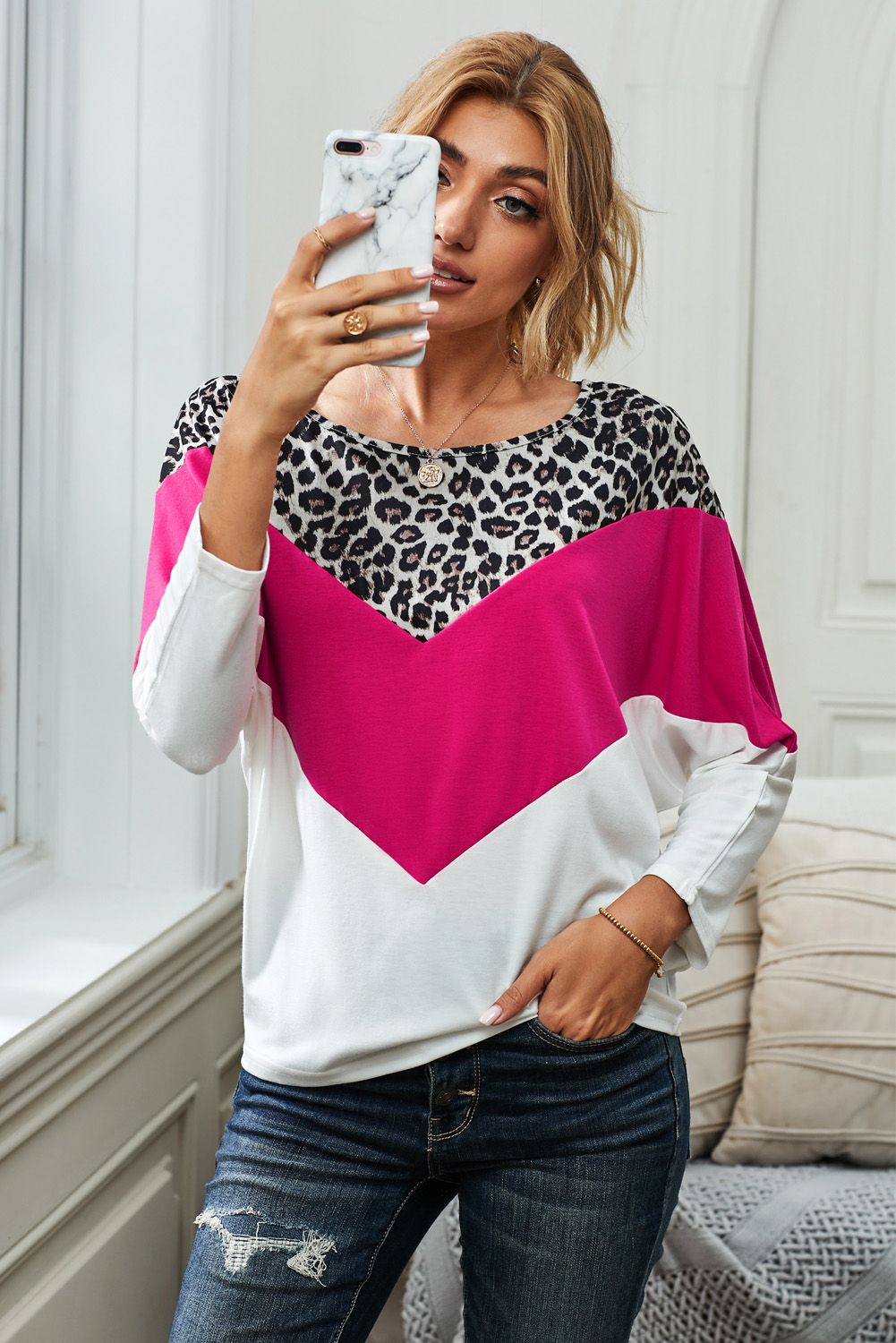 Wild free leopard print and colorblocks splicing